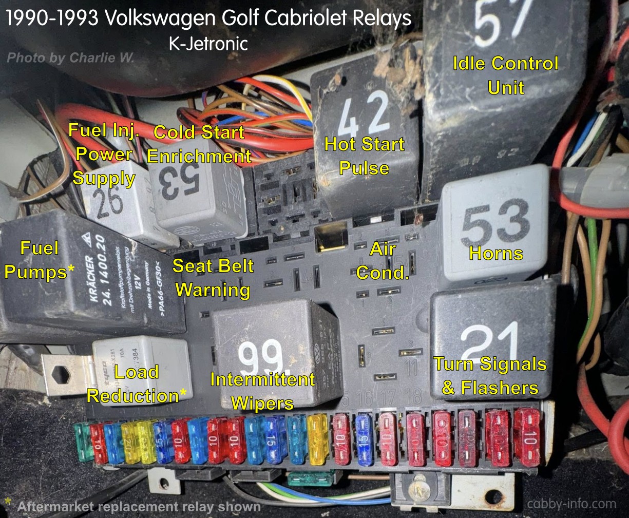 The Bentley Service Manual has numerous errors in its list for relays and fuses. Most of those errors have been corrected here! However, it's wise to verify your relays using the relay part numbers listed below, especially for the 1980-1982 cars. Fuse & Relay Panel.